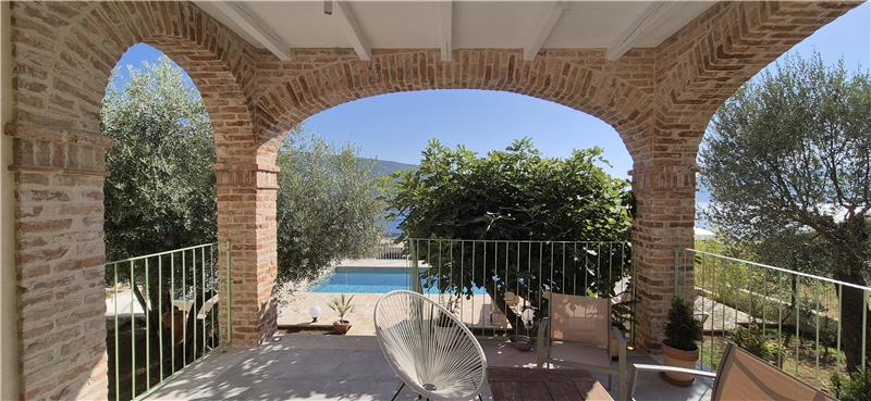Furniture in terrace/balcony/garden: sun loungers and parasols, dining table and chairs, comfy sofas and chairs, various outdoor benches and coffee table