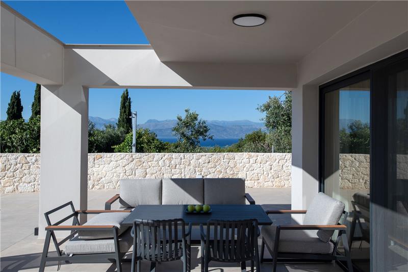 This coastal retreat occupies an elevated position on the northern shore of Corfu, commanding sweeping views across the Ionian Sea and capturing memorable sunsets. Designed in a clean, contemporary style with generous outdoor terraces and an inviting swimming pool, the property blends comfort with understated elegance. Sleeping up to eight guests across four bedrooms, it is particularly well suited to families or groups of friends seeking spacious accommodation in a peaceful countryside setting, yet within easy reach of local amenities and beaches.