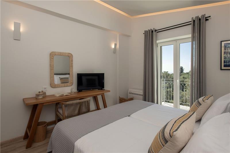 The coastline is within easy reach, with the main beach of Agios Spyridon and nearby coves such as Agios Petros, Agia Triada, Alipa and Ampelaki all close by. Further afield, guests can explore the striking shores of Rovinia, Arillas, Agios Georgios Pagi, Agios Stefanos and Glyfada. From Alipa harbour, boat trips depart to secluded beaches accessible only by sea. Traditional tavernas and small shops can be found in the village of Lakones, while walking and cycling enthusiasts may enjoy the scenic trail from Makrades down to Agios Georgios beach. For those interested in history, the impressive fortress of Angelokastro and the monastery of Palaiokastritsa Monastery offer fascinating glimpses into the island’s past.