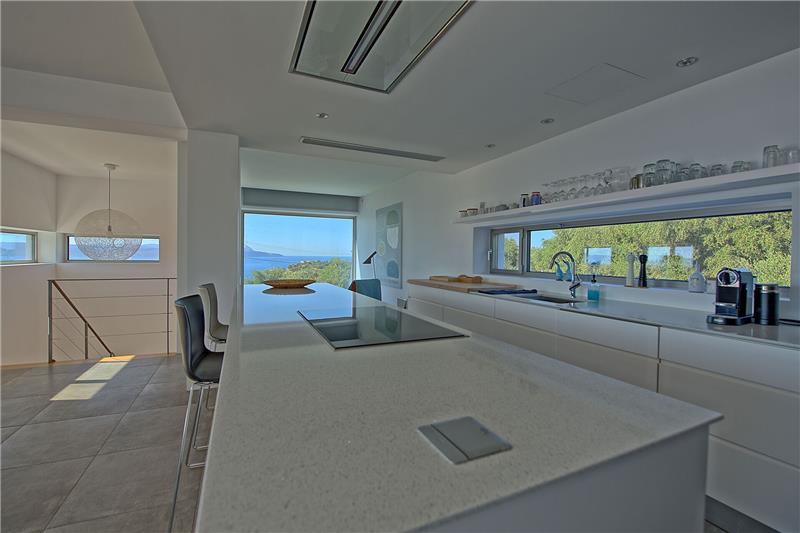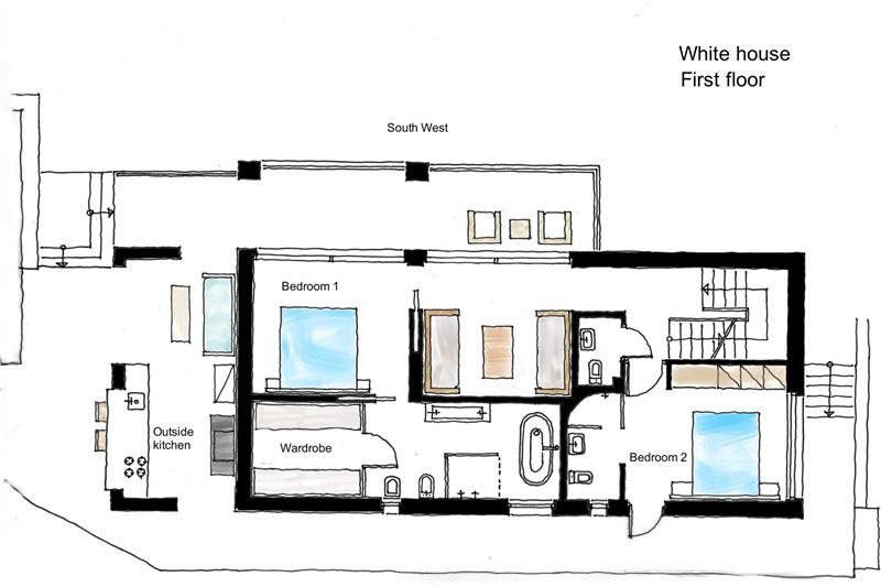 The approach road leads to convenient on-site parking close to the entrance. The property is made up of two main buildings, the main villa with 3 bedrooms and the stone-built annex with 2 further bedrooms. The main villa entrance opens into a welcoming living area, alongside a double bedroom with dressing area and an en-suite bathroom with both bath and shower. A further double bedroom with its own shower room is also located on this level. Both bedrooms and the living area open directly onto a terrace overlooking the sea. Stairs lead to the upper floor where there is an additional sitting room, dining space and a kitchen with breakfast bar and separate dining area. The kitchen opens out onto a panoramic terrace with stunning sea views. On the lower ground floor which has its own external access, guests will find another double bedroom, a shower room and two washing machines. Adjacent to the main villa, the separate stone annexe offers a living area with dining space, and a kitchenette opening onto a furnished outdoor terrace with sea views. The annex also houses two double bedrooms one with an en-suite shower room and the other with an en-suite bathroom with shower and bathtub. The two houses are linked by expansive terraces with numerous relaxation areas, hammocks, sunbeds and parasols surrounding a large infinity pool (can be heated on request) with sweeping sea views. A private tennis court and a petanque court are also onsite providing ample space for relaxation and recreation.