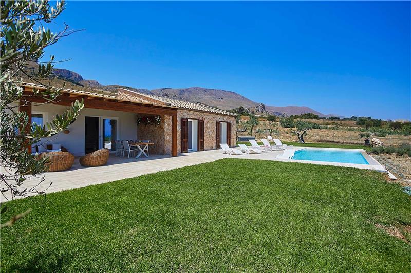 Set amid rolling countryside dotted with olive groves and indigenous Sicilian planting, this single-storey, open-plan villa enjoys sea views and a relaxed rural atmosphere. Arranged entirely on one level within landscaped lawns, the property offers easy living in a peaceful setting close to the coast. Its thoughtful layout makes it well suited to guests with limited mobility, as well as families, couples, or small groups holidaying together looking for a welcoming base from which to explore this part of western Sicily.