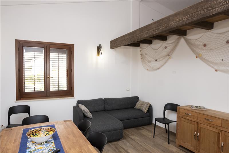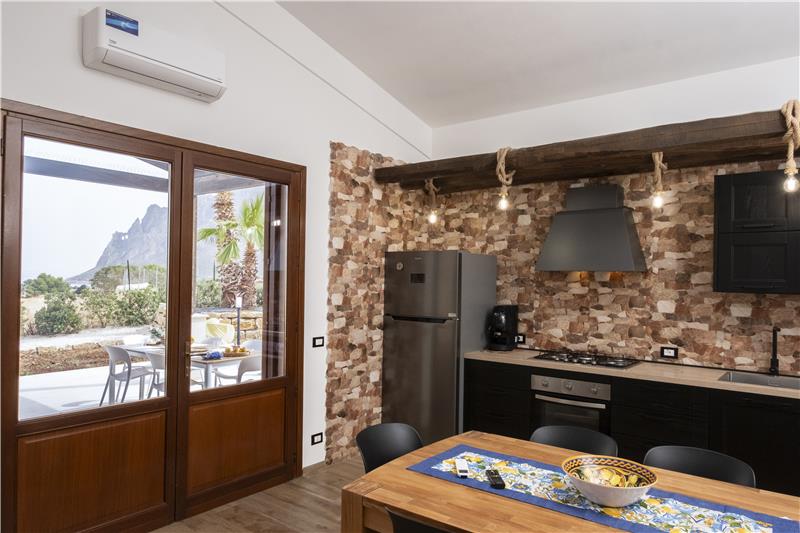 Tucked away beside a scenic former marble quarry, this stylish single-storey holiday home enjoys a peaceful setting just 1.5 km from the clear waters of Cornino Bay and the dramatic landscapes of the Monte Cofano Nature Reserve. With its calm atmosphere and thoughtful layout, the property is well suited to guests seeking a relaxing coastal escape, whether travelling as a family or a small group of friends who value comfort, outdoor living and easy access to nature and the sea.