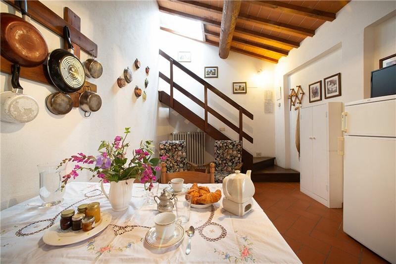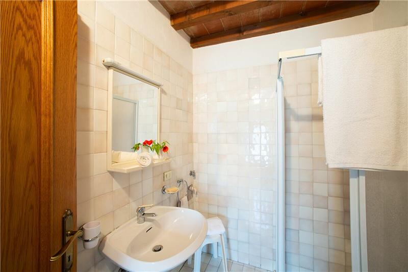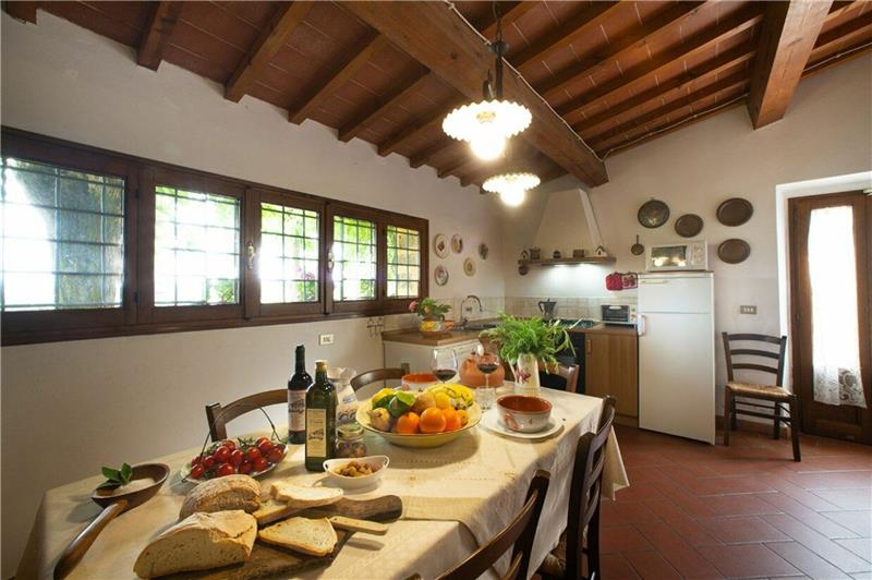 Outside, the garden is set among olive trees and furnished with tables, chairs, sunbeds, and a canopy for shade. From here, guests can take in views of the surrounding countryside.Car hire is recommended when staying in the Chianti region though this villa is only 350 metres from the picturesque village of Romola where guests can easily wander to the local square for a coffee or catch a bus to Florence, just twenty minutes away. The property’s location makes it a wonderful base for exploring Chianti’s celebrated wineries, medieval hill towns, and scenic trails. Nearby, visitors can discover the historic streets of Siena, the art and architecture of Florence, or spend a leisurely day visiting local markets and sampling regional produce.