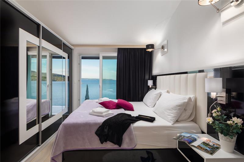 This large 7 bedroom sea-view villa consisting of 3 apartments of 3 apartments presented as a gounnd floor pool apartment where all the rooms are situated on one level and 2 x duplex apartments located above this apartment . This villa is located next to similar villas TG062 & TG063, and offers beautiful views of the Adriatic sea. A family friendly pebble beach is located approximately 200m away. The villa is ideal for a large family or group of friends who wish to be within easy reach of Trogir, Split and the surrounding islands.