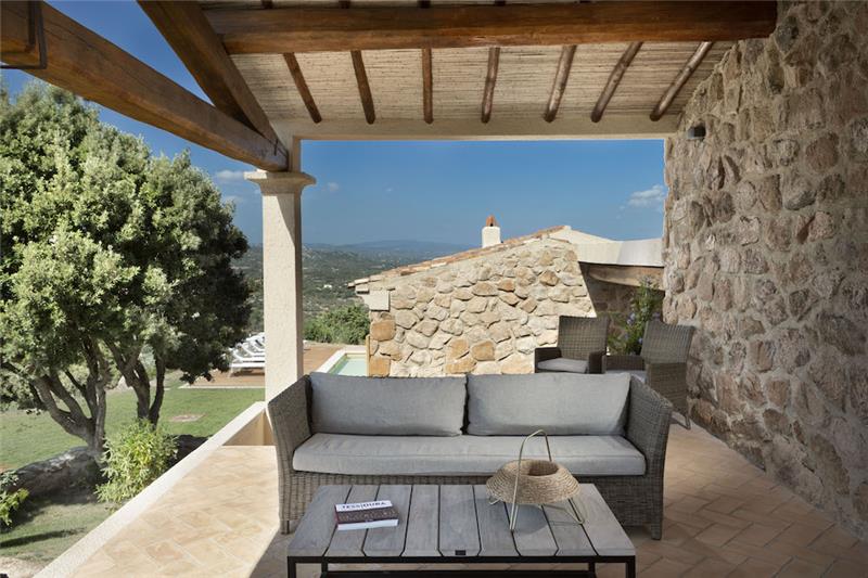 Set among the rolling hills of north-eastern Sardinia, this beautifully crafted group of villas sit within a refined hillside estate, surrounded by the wild, aromatic landscape typical of the Costa Smeralda. Its peaceful setting, elevated position and sweeping sea views make it particularly appealing to couples, small groups or families seeking a tranquil retreat within easy reach of the region’s most renowned coastal towns and beaches. Designed in the traditional Gallurese style with stone exteriors and exposed wooden features, the property blends harmoniously with the Mediterranean vegetation that surrounds it, offering guests an authentic Sardinian escape with tasteful interiors and a restful atmosphere.