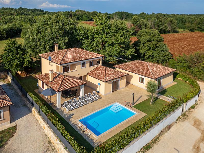 The villa’s location is ideal for those wishing to explore the cultural and natural attractions of central Istria. The historic village of Svetvinčenat offers a rich calendar of summer events, including the Etno Jazz Festival and the Festival of Dance hosted in the striking Morosini-Grimani Castle and surrounding Renaissance square. Local eateries serve traditional Istrian fare, while hiking and cycling paths weave through the countryside. Further afield, recommended day trips in the area include the seaside towns of Porec and Rovinj, the Roman Amphitheatre in Pula and a day trip to Venice by catamaran. Our Magazine contains more information on Istria and its many charms. Location