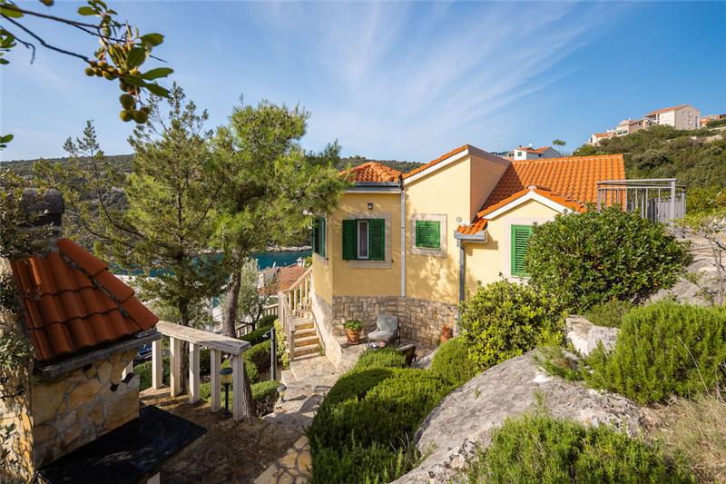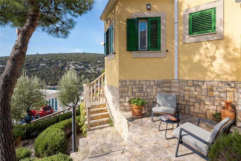 *For first time visitors the steep approach needs to be driven down slowly to get used to it, after a few runs guests adapt to this quickly.The village of Ljubljeva is located approximately 25 minutes away from Split airport. The villa provides an ideal base from which to explore the surrounding region which features such sites as the waterfalls of Krka National Park and the medieval city of Sibenik and its magnificent Renaissance Cathedral. The city of Split is also within easy reach. A 6m boat with outboard engine, no cabin, is also available for private rental (see pictures - prices on request). The villa would suit friends or a family (or two families) wishing to relax in peaceful surroundings.