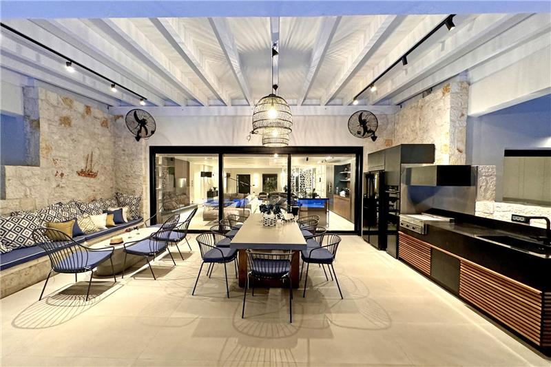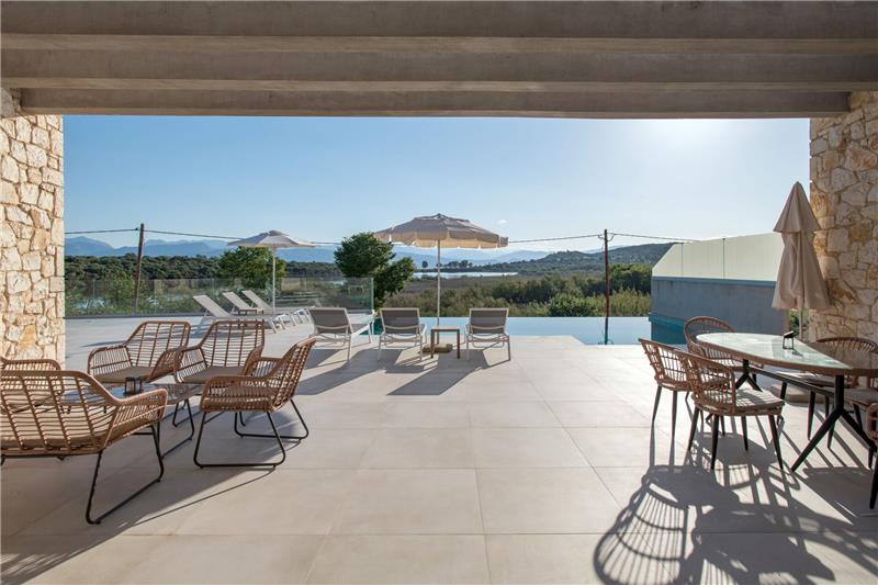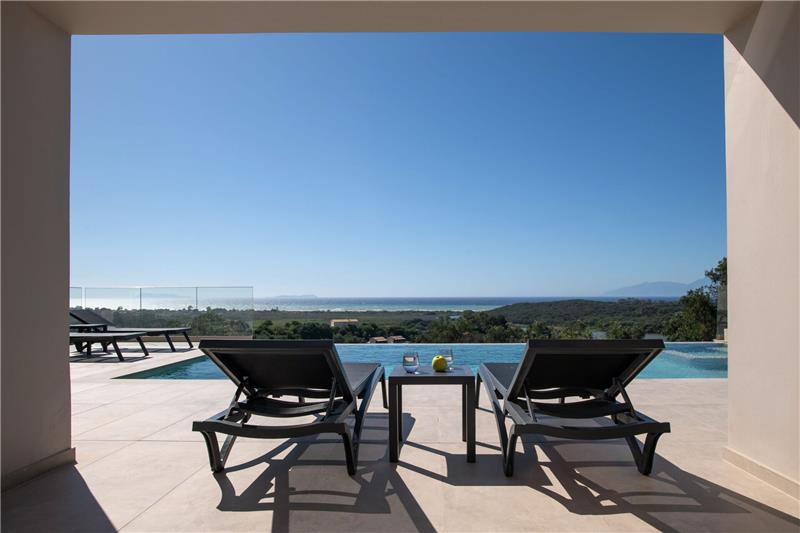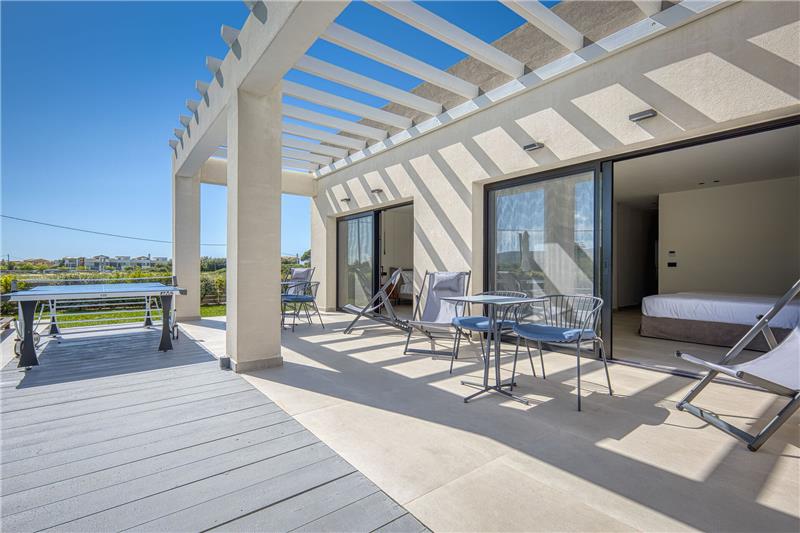 Furniture in terrace/balcony/garden: sunbeds, dining table & chairs, sofa & chairs